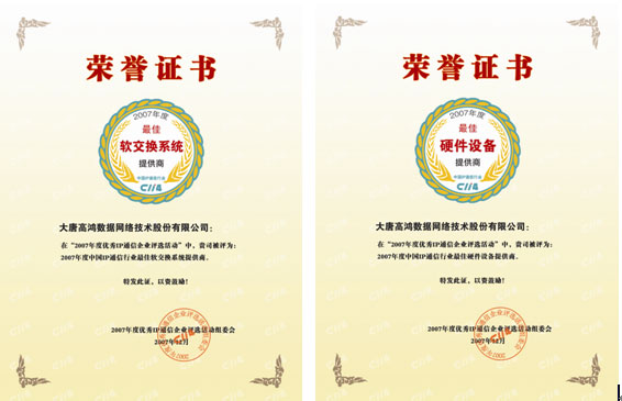 日前,由C114中國(guó)通信網(wǎng)主辦的“2007年度優(yōu)秀IP通信企業(yè)評(píng)選活動(dòng)”圓滿結(jié)束。大唐高鴻數(shù)據(jù)網(wǎng)絡(luò)技術(shù)股份有限公司(以下簡(jiǎn)稱“大唐高鴻”)憑借雄厚實(shí)力喜獲“2007年度中國(guó)IP通信行業(yè)最佳軟交換系統(tǒng)提供商”和“2007年度中國(guó)IP通信行業(yè)最佳硬件設(shè)備提供商”兩項(xiàng)大獎(jiǎng)。這是大唐高鴻繼2007年4月榮獲中國(guó)VoIP論壇“2006年最佳中繼網(wǎng)關(guān)提供商”和“2006最佳VoIP解決方案提供商”兩項(xiàng)大獎(jiǎng)之后的又一次實(shí)至名歸。
