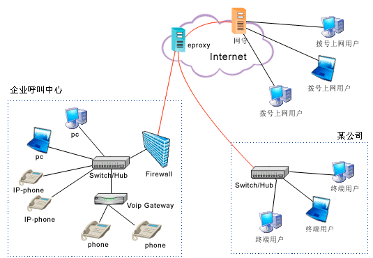 呼叫中心:可以采用客戶端軟件Softphone和客戶端控件Webphone,還可以采用IP電話機或連接VoIP網(wǎng)關(guān)的普通電話機。