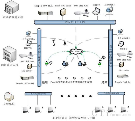 G50等相關(guān)設(shè)備。本套會(huì)議電視系統(tǒng)成功地實(shí)現(xiàn)了省、設(shè)區(qū)市、縣(區(qū))三級(jí)聯(lián)網(wǎng),此項(xiàng)目的部署,同時(shí)得到了RADVISION合作伙伴江西省電信公司的大力支持與協(xié)調(diào)。在項(xiàng)目簽約后3個(gè)月內(nèi)就完成了貨物調(diào)備、安裝、調(diào)試及測試、培訓(xùn)等一系列相關(guān)工作,受到了江西省政務(wù)信息網(wǎng)領(lǐng)導(dǎo)們的一致好評。