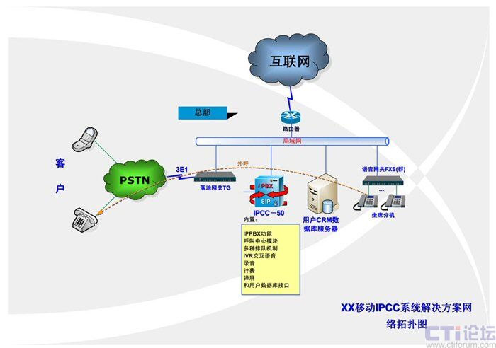 隨著社會的進(jìn)步和發(fā)展,各企業(yè)和公司越來越重視將現(xiàn)代科技和營銷相結(jié)合,華東某省移動公司,為了快速高效地拓展自己的業(yè)務(wù),決定借助網(wǎng)絡(luò)和通訊的發(fā)展建立新的營銷平臺,通過嚴(yán)格的考察和篩選,選擇攜手Polylink集團(tuán)打造新型的IP呼叫中心平臺。 4.方案設(shè)計(jì)