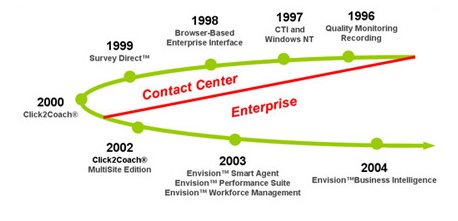 Envision 1994年成立于美國西北部主要都市西雅圖,致力于客服質(zhì)量管理應(yīng)用軟體與服務(wù)的世界領(lǐng)導(dǎo)品牌;以客戶實際運營需求為產(chǎn)品研發(fā)導(dǎo)向,進(jìn)一步整合品質(zhì)監(jiān)測暨績效優(yōu)化解決方案,提供客戶單一完整操作便利的全方位的解決方案。因此多年來不但獲得市場廣大客戶的系統(tǒng)建置支援與使用效益證言愛護,更榮獲許多專業(yè)高階管理精心評選出主要呼叫中心產(chǎn)品應(yīng)用與服務(wù)等大獎。