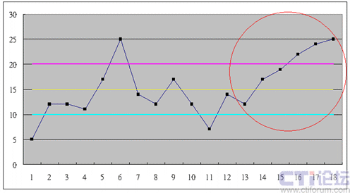 6、9、12法則是一個非常有威力的口訣,讓第一線的班長都可以從控制圖中,輕易的判斷是否有發(fā)生了特殊原因。
