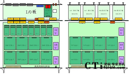 集成了大電流-48VDC-DC電源模塊(給擴(kuò)展板板上的功能子板以及背板供電)和提供8個(gè)DSP子板槽位。