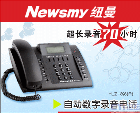 據(jù)紐曼專賣(mài)店通訊產(chǎn)品負(fù)責(zé)人介紹,紐曼這次推出的數(shù)字錄音電話之所以能轟動(dòng)整個(gè)通訊市場(chǎng),最大的原因就是這款錄音電話與傳統(tǒng)的錄音電話有著很本質(zhì)的區(qū)別。傳統(tǒng)的錄音電話要么是通過(guò)是磁帶錄音,要么就是需要連接電腦錄音,無(wú)法達(dá)到長(zhǎng)時(shí)間實(shí)時(shí)錄音的效果。紐曼這次推出的數(shù)字錄音電話最大的特點(diǎn)就是無(wú)需連接電腦,插入電話線就可以實(shí)時(shí)錄音,錄音時(shí)長(zhǎng)從400小時(shí)到1600小時(shí)不等,并且支持電腦和本機(jī)兩種查詢方式。