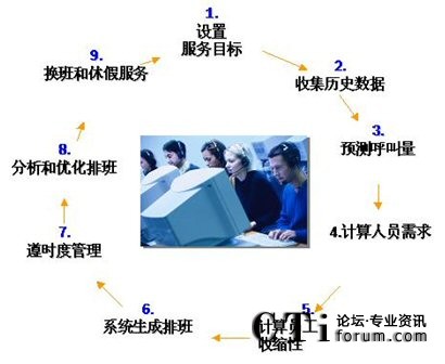Impact 360 WFM提供一整套的集成排班管理應(yīng)用程序,幫助呼叫中心在三個(gè)關(guān)鍵并且時(shí)常是沖突的要素之間作出優(yōu)化。他們是:客戶的滿意度、員工的的滿意度與穩(wěn)定性,以及運(yùn)營(yíng)的成本。在排班管理過程中,WFM采用如下基本流程: