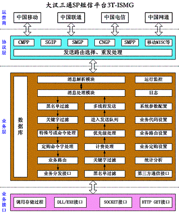 二、 大漢三通 SP 短信平臺 3T-ISMG 系統(tǒng)構架