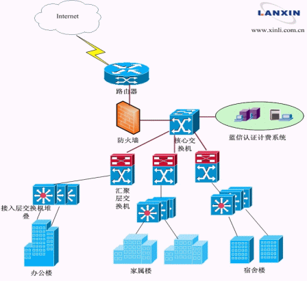 系統(tǒng)部署于解放軍后勤工程學(xué)院網(wǎng)絡(luò)中心機房,通過與交換機的配合實現(xiàn)用戶的安全認證、多樣計費及有效管理。此次項目的順利穩(wěn)定運行,得到了校方及電信方對藍信產(chǎn)品的一致認可。