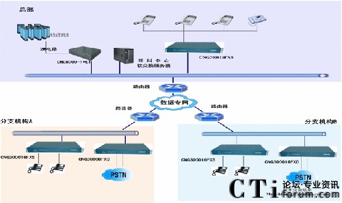 通常情況下座席必須安裝在呼叫中心平臺(tái)附近500米之內(nèi)的地方,在很多情況下,分布式的呼叫中心座席分布在各個(gè)城市。因此需要為呼叫中心平臺(tái)提供遠(yuǎn)程的呼叫中心座席人員。本方案主要描述的是模擬語(yǔ)音網(wǎng)關(guān)在呼叫中心的應(yīng)用。