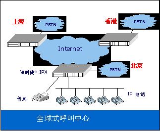 美國訊時(shí)捷™科技公司的“訊時(shí)捷™™ IPX”系統(tǒng)平臺,可以作為分布式的IP呼叫中心,并可利用各地的網(wǎng)關(guān),提供低費(fèi)用的IP