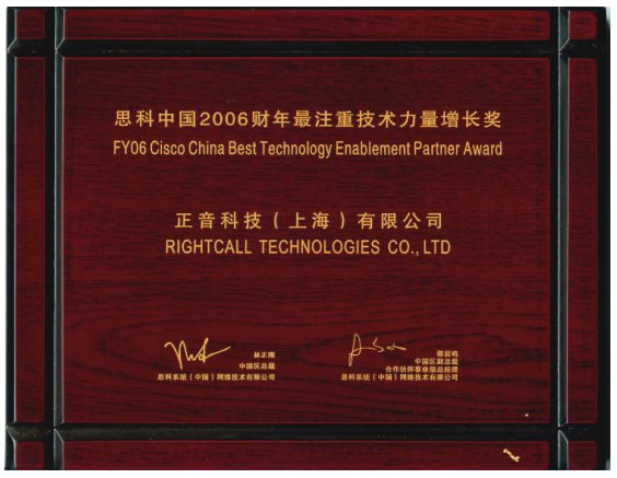 正音科技榮獲“思科中國2006財(cái)年最注重技術(shù)力量增長(zhǎng)獎(jiǎng)”