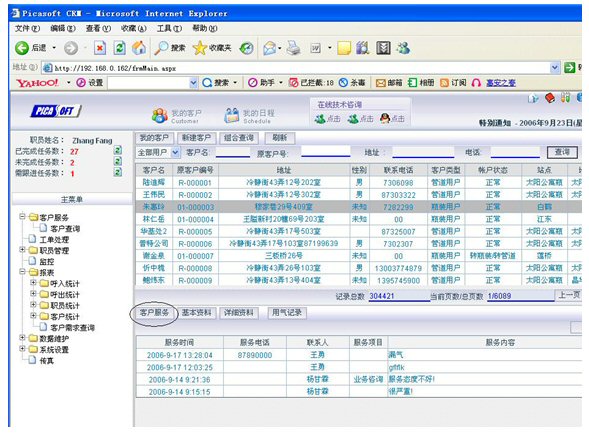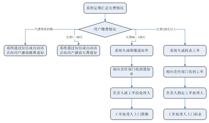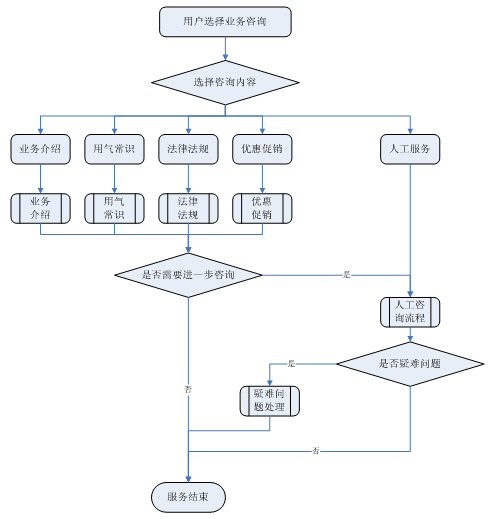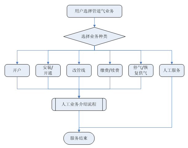 業(yè)務(wù)咨詢:用戶通過人工、自動語音等方式咨詢有關(guān)政策法規(guī)、資費(fèi)標(biāo)準(zhǔn)、用氣常識、報(bào)裝方法等,系統(tǒng)以語音、傳真、Email、短消息等方式回復(fù)客戶。