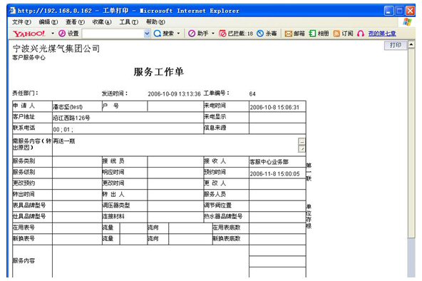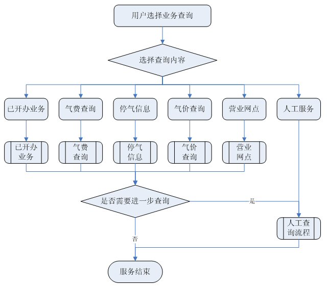 業(yè)務(wù)查詢:用戶可通過受理人員或自動語音應(yīng)答系統(tǒng)根據(jù)用戶要求從數(shù)據(jù)庫查詢資料,然后通過語音方式播報(bào)或送到用戶指定傳真機(jī)或其他終端設(shè)備上。應(yīng)考慮以后用web方式查詢氣費(fèi)等數(shù)據(jù),以不動及主體設(shè)備方式平滑升級。