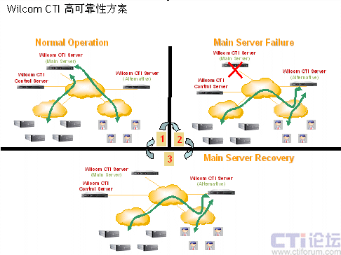WILCOM CTI系統(tǒng)將CTI主流應(yīng)用帶進(jìn)了專業(yè)的呼叫中心。使得通過普通PC即可以完成自動(dòng)撥號(hào)、會(huì)議電話等電話功能 ,并且與數(shù)據(jù)存儲(chǔ)主機(jī)及其客戶機(jī)相配合,提供消息管理。座席代表能夠迅速地用電腦處理呼叫并且使用應(yīng)用程序進(jìn)行自動(dòng)撥號(hào)。系統(tǒng)還可以利用主叫信息以及呼叫提示位進(jìn)行實(shí)時(shí)的檢索和操作并將數(shù)據(jù)顯示給坐席電腦。系統(tǒng)還可以根據(jù)一定條件的計(jì)劃安排(如市場(chǎng)調(diào)查、客戶要求的回叫等),進(jìn)行呼出管理,完成預(yù)覽或預(yù)測(cè)呼出,以提高服務(wù)的效率和水平。 高可靠的CTI雙機(jī)熱備方案