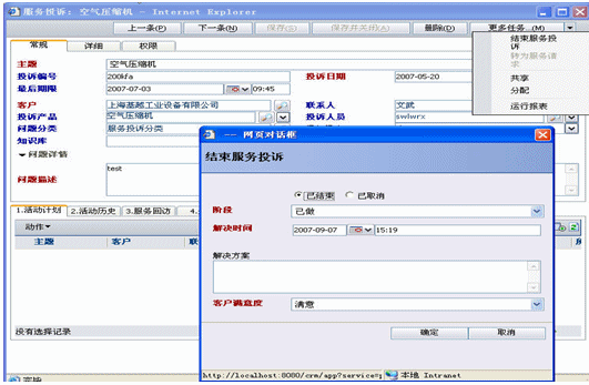 服務(wù)投訴,公司服務(wù)投訴由前臺(tái)接收然后轉(zhuǎn)交工程服務(wù)人員受理即是由工程服務(wù)部經(jīng)理審核通過后轉(zhuǎn)為服務(wù)請(qǐng)求,從而生成派工單提交總經(jīng)理處審批.