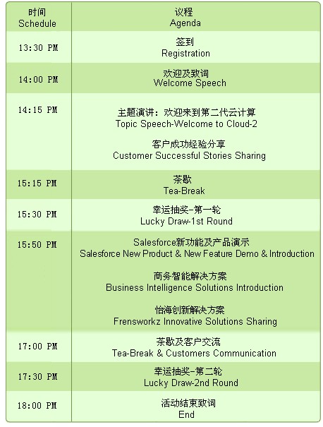 為了表達對您的感謝,同時為了我們更美好的明天,Salesforce.com攜手怡海軟件將又一次走到我們親愛的用戶中來,在此特邀請您參加2011年6月23日舉辦的Salesforce客戶答謝會! 會上,我們將與您一起分享Salesforce.com云計算平臺建設(shè)和應(yīng)用的最新實踐經(jīng)驗,交流云計算的最新技術(shù)、解決方案。