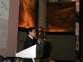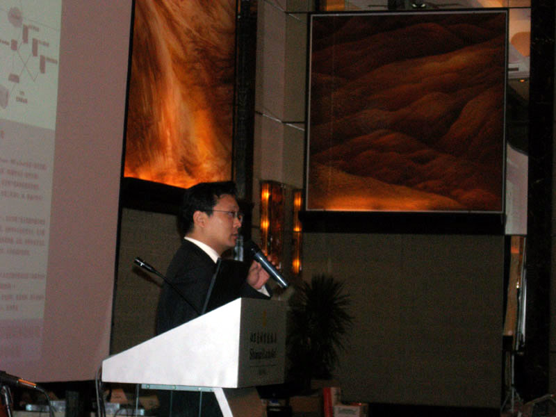 。。2005年8月24日,3Com NBX語音通訊產(chǎn)品推廣會于北京香格里拉大酒店成功舉辦。圖為3Com中國地區(qū)高級市場經(jīng)理朱海翔闡述3Com產(chǎn)品與市場(點擊察看大圖)