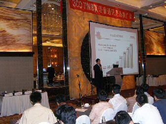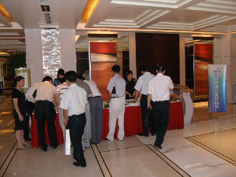 。。在茶歇期間,3Com的產(chǎn)品經(jīng)理朱海翔先生、技術(shù)顧問黃海濤先生及NBX中國代理北京網(wǎng)音的銷售代表和與會的朋友們進行了熱烈的交流,與會的朋友們對NBX通訊產(chǎn)品均表示出極大的關(guān)注與濃厚的興趣,爭相與現(xiàn)場做演示NBX通訊系統(tǒng)進行零距離的"親密接觸",感受網(wǎng)絡電話帶來的魅力。大家所提出的問題也涵蓋了從話機功能到如何實現(xiàn)異地互聯(lián)等諸多實際功能,在獲得詳實答案后,對NBX通訊產(chǎn)品充滿了信心。此時此刻,香格里拉大酒店的宴會廳里,談論NBX的聲音充滿了每一個角落。