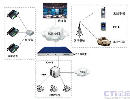 在調(diào)度終端方面,室內(nèi)可以采用調(diào)度話機(jī),包括既有的傳統(tǒng)電話分機(jī);室外主要分為人員和裝備,移動(dòng)人員可以采用專(zhuān)用PDA登錄到系統(tǒng)中,實(shí)現(xiàn)調(diào)度作業(yè)與單呼、群呼;車(chē)輛裝備可以安裝車(chē)載終端實(shí)現(xiàn)調(diào)度指令的接收和語(yǔ)音通信。