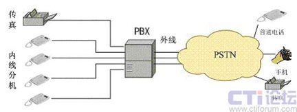 目前大多數(shù)企業(yè)使用PBX基于PSTN網(wǎng)絡組建內(nèi)部電話系統(tǒng),如下圖:
