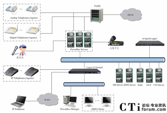 圖2-2 典型混合型錄音組網(wǎng)拓撲圖