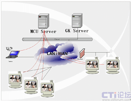 當(dāng)召開(kāi)多點(diǎn)的交互式會(huì)議時(shí)則需要MCU(多點(diǎn)控制器)的參與。MCU的作用類似于交換機(jī),主要完成各會(huì)場(chǎng)圖像的切換和語(yǔ)音的混音功能,一般放置在主會(huì)場(chǎng)。在MCU的控制下可以實(shí)現(xiàn)語(yǔ)音激勵(lì)、導(dǎo)演控制等多種會(huì)議控制方式。