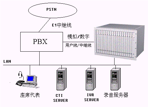 Server,CTI Server控制PBX執(zhí)行轉(zhuǎn)接任務(wù),呼叫進(jìn)入人工座席ACD隊(duì)列排隊(duì),如相關(guān)話務(wù)員有空閑,則執(zhí)行轉(zhuǎn)接操作。同時(shí)對(duì)于有些服務(wù),根據(jù)需要,CTI
