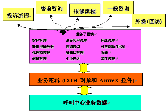 在此中心指導(dǎo)思想之下,惠普咨詢又結(jié)合聯(lián)想電腦公司的業(yè)務(wù)特點(diǎn),所設(shè)計的呼叫中心涵蓋了廣泛功能,包括: