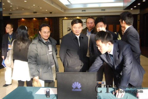 圖:楊學(xué)山部長(zhǎng)(中間)等人視察華為的數(shù)字化城市管理信息系統(tǒng)