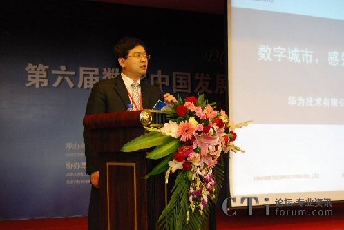 在數(shù)字城市領(lǐng)域的成績(jī)和對(duì)未來(lái)的展望圖為華為軟件公司ICT集成解決方案總監(jiān)邢練軍做《數(shù)字城市 感知中國(guó)》的主題演講。