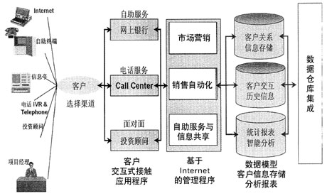 針對商業(yè)銀行面臨的挑戰(zhàn)和真實的需要,Oracle開發(fā)了面向銀行業(yè)的CRM解決方案。該解決方案提供全方位、統(tǒng)一的多渠道協(xié)同的客戶交互服務入口,包括網上自助服務、網上他助服務(通過Call Center在線指導客戶理財或提供投資建議)、電話自助服務、電話專家服務、電話智能市場推銷和銷售等。現(xiàn)場服務則提供客戶經理與客戶面對面交流的能力,包括知識共享(金融市場信息、銀行產品信息和各業(yè)務部門發(fā)布的信息等)、銀行信息的及時獲取、產品和服務介紹、適時的投資建議、客戶交易行為追蹤、通過智能化工具提供專家服務、銷售機會管理等,允許重點客戶通過Web、電話或與客戶經理/投資顧問面談等方式,提供更靈活的服務選擇和更及時的服務,以保留大客戶群,增長股東利益。