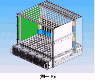 我們可以看到當今市面上已有相關的零件商或系統(tǒng)商開發(fā)出14U或13U,12U的ATCA機箱。就ATCA機箱的型式來說可以分為直立型插卡與橫向型插卡兩種類型。直立式插卡機箱的標準為14槽(參考圖一B),而橫向型機箱因受限于機箱高度,所以視其高度決定槽數(shù)的多少。 ATCA的架構主要包括以下部分:正面插槽,RTM,PEM,背板,CMMs,散熱系統(tǒng)。(參考圖一與圖二)