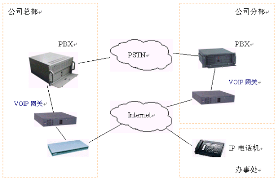用VOIP網(wǎng)關構建整個IP電話系統(tǒng)可以采取以下方式(拓撲圖見下圖):