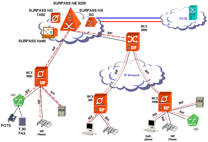 - MCX2000——集中路由控制服務器,提供IP CENTREX功能,支持多臺MCX200或MCX1000的互通,集中控制跨MCX200或MCX1000的呼叫。典型應用場景是與MCX200/1000混合組網(wǎng),構成企業(yè)廣域IP語音網(wǎng)絡或NGN大規(guī)?蛻艚尤刖W(wǎng)絡。