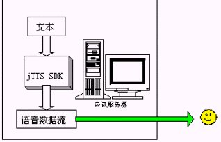 本地接口調(diào)用方案提供捷通華聲TTS開發(fā)工具包(jTTS-SDK)可使用戶在其開發(fā)的系統(tǒng)中加入語音合成的功能。jTTS-SDK是基于Win32(32位Windows環(huán)境,包括Windows95/98/2000/NT)平臺下的開發(fā)工具包,因此這種方案要求使用方的聲訊服務系統(tǒng)所運行的是32 位Windows環(huán)境的服務器,并且需要對使用方系統(tǒng)進行部分程序的改造。該方案適用于要求使用方具有二次開發(fā)能力的集成和應用商。