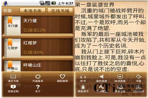 只要將捷通華聲出品的聽書軟件安裝在Android1.6以上系統(tǒng)的智能手機(jī)中,即可隨心暢讀,捷通聽書是捷通華聲人機(jī)交互(HCI)技術(shù)的創(chuàng)新之作,它運(yùn)用嵌入式語音合成技術(shù),無需人工進(jìn)行預(yù)置錄音,無論什么文體,都可進(jìn)行順暢的海量閱讀,這樣的海量閱讀并不會給手機(jī)的存儲空間帶來負(fù)擔(dān),現(xiàn)在就可在官網(wǎng)中http://www.hcicloud.com/xiazai.asp?id=2&classtitle=手機(jī)伴侶&clid=3 下載捷通TTS組件,只要電子書的格式為純文本文件TXT格式,便可順利進(jìn)行語音朗讀。您可以選擇男聲、女聲和寶寶聲,音質(zhì)清晰可媲美真人發(fā)聲,聽書已不再成為難事。捷通聽書軟件外觀整體設(shè)計(jì)古樸典雅,仿佛真能聞到書香的氣息,這樣的視聽氛圍會立刻帶你進(jìn)入到聽書的境界中。獨(dú)特的翻頁模式更具人性化的設(shè)計(jì),讓人機(jī)交互更像真正意義上的翻頁讀書,無論是聽書,還是看書,都給人帶來美好的體驗(yàn)。另外,捷通華聲的語音合成技術(shù)還可提供多種音色的備選方案,可根據(jù)用戶的需求進(jìn)行選用,同時支持英語、日語、俄語、德語、意大利語等多個語種的語音合成技術(shù),為用戶提供真正多方位的服務(wù)。近日,捷通聽書還在BTV《在線E起來》欄目中精彩亮相,節(jié)目中的多項(xiàng)測評使這款軟件表現(xiàn)不俗,捷通聽書軟件再次成為智能手機(jī)軟件應(yīng)用中的新亮點(diǎn)。