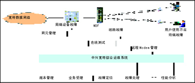 依賴于豐富的寬帶網(wǎng)絡(luò)實際運營經(jīng)驗和強大的技術(shù)實力,通過對以上現(xiàn)狀的分析和總結(jié),中興通訊開發(fā)了綜合寬帶運維系統(tǒng),包括在線測試、M+1保護、遠程Modem管理等功能。