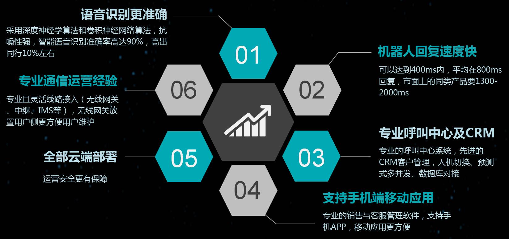 智能鑒權(quán)、智能語音導(dǎo)航、智能路由、智能知識(shí)庫(kù)匹配、智能質(zhì)檢、智能外呼
