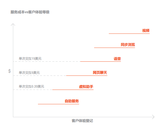 人工服務(wù)單次交互成本比聊天或語音渠道要高5-15美元。∗
