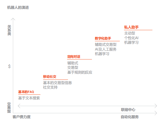 客戶服務(wù)智能化: 就是通過對(duì)服務(wù)流程的優(yōu)化或改造以支撐AI技術(shù)應(yīng)用最終達(dá)到提升人工效率和客戶體驗(yàn)的過程。在用戶層面包括:語音或文本聊天機(jī)器人、實(shí)體機(jī)器人、虛擬座席、智能IVR 、智能外呼等。在座席層面包括:智能知識(shí)庫(kù)、智能工單系統(tǒng)、智能營(yíng)銷輔助系統(tǒng)、流程機(jī)器人、座席學(xué)習(xí)系統(tǒng)、座席情緒感知系統(tǒng)等。在管理層面包括:智能質(zhì)檢系統(tǒng)、智監(jiān)控系統(tǒng)、智能 分析系統(tǒng)、智能排班系統(tǒng)等。