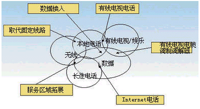 數(shù)據(jù)服務(wù)同本地電話服務(wù)的融合,是不來最重要的融合趨勢(shì)之一,其主要體現(xiàn)在通過本地電話可以解決數(shù)據(jù)業(yè)務(wù)的接入問題,可以提供窄帶或?qū)拵У慕尤肽芰。同時(shí),可以為Internet服務(wù),如電子郵件服務(wù)同電話話音服務(wù)結(jié)合起來創(chuàng)造條件。一種未來的發(fā)展方向就是利用電話來接收電子郵件同時(shí)可以用電子郵件的方式閱讀語言信箱中的留言!奥犽娮余]件,看語言信箱”是對(duì)這種融合服務(wù)的最好描述。而數(shù)據(jù)業(yè)務(wù)同長途電話業(yè)務(wù)的融合集中于通過VoIP技術(shù)提供長途電話服務(wù),競(jìng)爭(zhēng)收入最大的電信市場(chǎng)。數(shù)據(jù)服務(wù)同有線電視娛樂服務(wù)的融合主要體現(xiàn)在以Cable Modem做為數(shù)據(jù)接入手段和視頻點(diǎn)播這樣的娛樂服務(wù)。通過Cable Modem,有線電視網(wǎng)也可以提供本地電話和長途電話接入業(yè)務(wù),象AT&T和TCI 及MediaOne 正在進(jìn)行的電話業(yè)務(wù)實(shí)驗(yàn)。而寬帶的數(shù)據(jù)接入則為數(shù)據(jù)服務(wù)的寬帶化提供了條件。