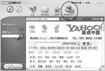 MSN瀏覽器除了靚麗的界面,更集郵件和即時(shí)通訊功能為一身,注意圖中圈住的地方,就是與即時(shí)通訊軟件MSN的有機(jī)結(jié)合