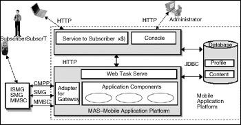 ·移動應用系統(tǒng)(MAS)。幾乎所有的移動應用都由MAS完成。MAS最主要的接口是與不同移動運營商網(wǎng)關的連接,被定義為網(wǎng)關適配器(Adapter