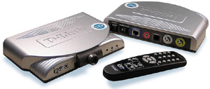 DVC-1000是一套基于寬帶網(wǎng)絡的IP視頻終端設備,可以在基于Cable/DSL Modem或DDN的Internet連接上或者局域網(wǎng)上實現(xiàn)視頻和音頻傳遞和交流,完成視頻電話和視頻會議功能。DVC-1000是一套一體化便攜系統(tǒng)(見圖1),將視音頻捕獲、視音頻播放、網(wǎng)絡傳輸和管理功能集成在一體,因此要構建一套視頻會議系統(tǒng)非常簡單,不需要更多的外圍設備。測試中我們分別針對Internet和局域網(wǎng)兩種環(huán)境構建了2套系統(tǒng)(見圖2),這也是目前用戶普遍采用的兩種方式。
