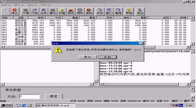 選擇<行情>按鈕進行證券信息發(fā)布,系統(tǒng)自動彈出<提示>窗口,如圖3.5