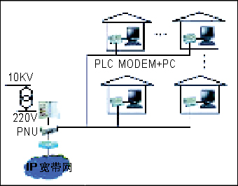 利用普通220V電源線作載體,將IP寬帶信號(hào)接入每個(gè)家庭的PLC(Power Line Communication)網(wǎng)絡(luò)正在進(jìn)入小區(qū)/樓宇市場(chǎng)。它是通過(guò)電力線網(wǎng)絡(luò)單元(PNU)將寬帶接入信號(hào)經(jīng)正交頻分復(fù)用(OFDM)調(diào)制、匯入小區(qū)/樓宇電力變壓器用戶(hù)輸出線上,再經(jīng)電源線送到各家各戶(hù)。PC、IP Phone、Fax設(shè)備均可通過(guò)房間內(nèi)部的電源插座寬帶接入Internet。