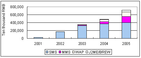 由于SMS、MMS、J2ME/BREW能帶來的收入較為可觀,目前整個移動增值服務價值鏈的資金主要流向該三類業(yè)務。在SMS領域,產(chǎn)業(yè)鏈合作活躍,SP對游戲、交友、鈴聲、圖片等業(yè)務的投入很大;MMS適合點對點應用以及信息點播服務,市場潛力也很大;J2ME/BREW則以開發(fā)交互式業(yè)務為主,同時因是未來發(fā)展方向,屬于戰(zhàn)略性產(chǎn)品,倍受產(chǎn)業(yè)鏈的重視;WAP產(chǎn)品在移動增值服務市場上將長期存在,但占整個移動增值服務市場的份額比較低。