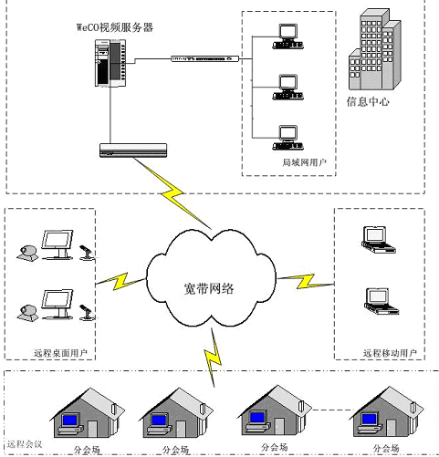 計算機、網(wǎng)絡技術高速發(fā)展的今天,傳統(tǒng)的通訊方式日益滿足不了人們的要求。人們要求能進行遠程會議,開展面對面的交流;同時,在滿足傳統(tǒng)視頻會議音/視頻通信的基本要求之外,現(xiàn)代會議更希望能夠提供更加豐富多樣的會議討論形式和功能,比如:遠程開展季度/年度預算及工作計劃的討論,需要遠程共享PPT等演示文檔和EXCEL等表格,需要共同就某一網(wǎng)上信息開展討論,甚至能夠將開會的通知通過電子郵件和手機短消息的方式傳達到每一個與會者那里。