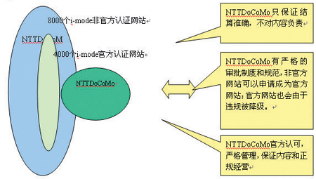 要解決上述問題需要一個(gè)系統(tǒng)化的進(jìn)程,我們可以借鑒NTT DoCoMo的i-mode的管理模式,如圖5所示,這種管理模式的核心思路是將SP分成官方和非官方分別管理,并建立升降級制度,鼓勵(lì)SP升級。這樣做的好處是:1.明確運(yùn)營商與SP的關(guān)系;2. 明確用戶投訴的對象;3. 降低SP進(jìn)入門檻,鼓勵(lì)SP開發(fā)業(yè)務(wù)。