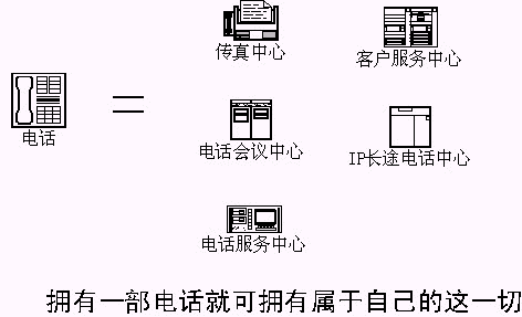 該方法的實(shí)施,可以讓每一個(gè)電話和強(qiáng)大的CTI系統(tǒng)聯(lián)系,一部電話將變成語音系統(tǒng)、傳真系統(tǒng)、電話會(huì)議系統(tǒng)、……。擁有這一切用戶只需要支付呼叫轉(zhuǎn)移的費(fèi)用?梢栽O(shè)想,以后開辦公司,只要申請電話,擁有ADSL上網(wǎng)的電腦,用戶在辦公室、在家,打開電腦,單擊進(jìn)入自己的語音系統(tǒng)、會(huì)議系統(tǒng),宣傳公司,召開會(huì)議,發(fā)送傳真。公司擁有、使用自己的、電信級(jí)的CTI系統(tǒng);所有CTI應(yīng)用系統(tǒng)的開發(fā),語音部分完全由電話接入服務(wù)商提供,……。