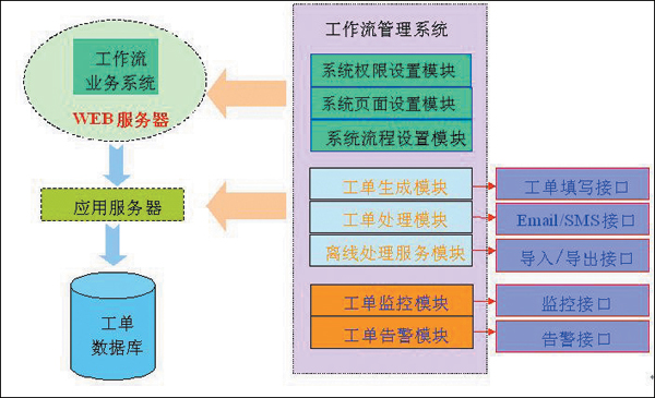 第三部分是工作流業(yè)務(wù)系統(tǒng),提供工作流系統(tǒng)的各項(xiàng)處理功能,包括復(fù)核、派單、處理、反饋、查詢等功能。該系統(tǒng)運(yùn)行在Web服務(wù)器上,最終用戶只需要在瀏覽器上輸入該工作流業(yè)務(wù)系統(tǒng)的網(wǎng)址就可以使用該系統(tǒng)。